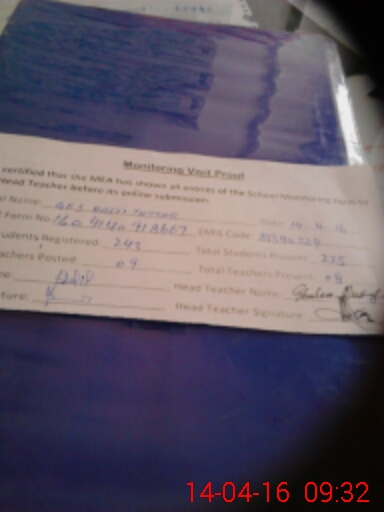 | Attendance Register | Head Teacher | MEA with School | Visit Proof |