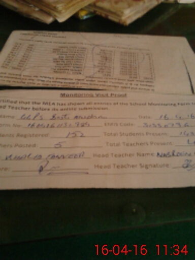 | Attendance Register | Head Teacher | MEA with School | Visit Proof |