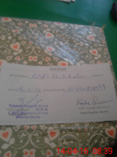 | EMIS Code: 39310748 | Name of School: GGES 42/D KALAN | |||