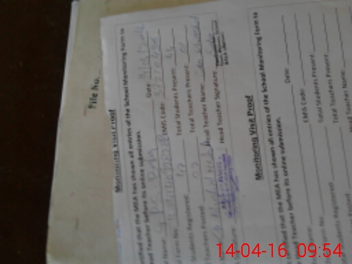 | Attendance Register | Head Teacher | MEA with School | Visit Proof |