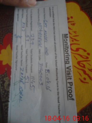 | Attendance Register | Head Teacher | MEA with School | Visit Proof |