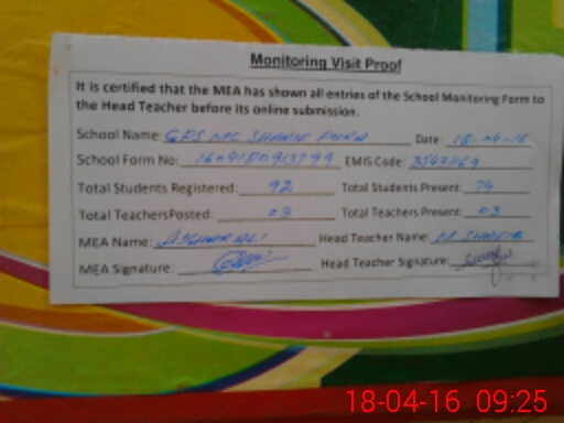 | EMIS Code: 35431169 | Name of School: GPS MC MOHALLAH SHARIF PURA | |||
