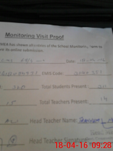 | Attendance Register | Head Teacher | MEA with School | Visit Proof |
