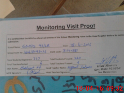 | EMIS Code: 31140381 | Name of School: GMPS CHAK 93/6-R | |||