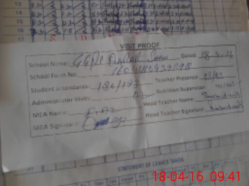 | Attendance Register | Head Teacher | MEA with School | Visit Proof |