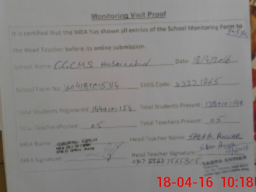 | EMIS Code: 33221265 | Name of School: GGCMS HUSSAIN ABAD | |||