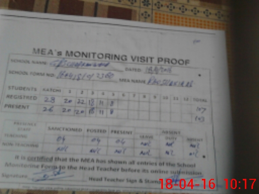| Attendance Register | Head Teacher | MEA with School | Visit Proof |