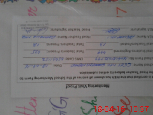 | Attendance Register | Head Teacher | MEA with School | Visit Proof |