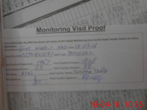 | Attendance Register | Head Teacher | MEA with School | Visit Proof |