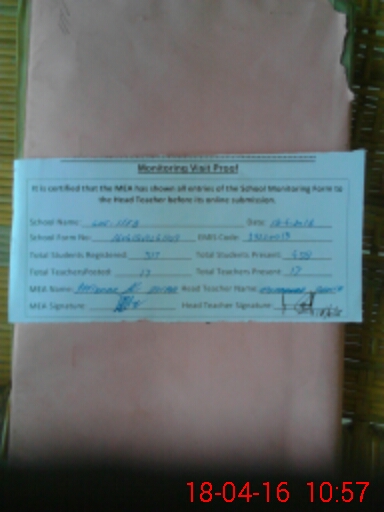 | Attendance Register | Head Teacher | MEA with School | Visit Proof |