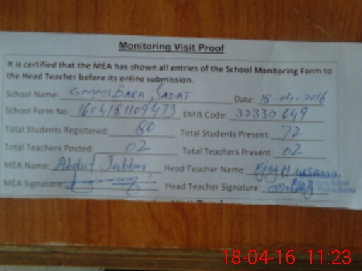 | EMIS Code: 32330649 | Name of School: GPS BARA SADAT | |||