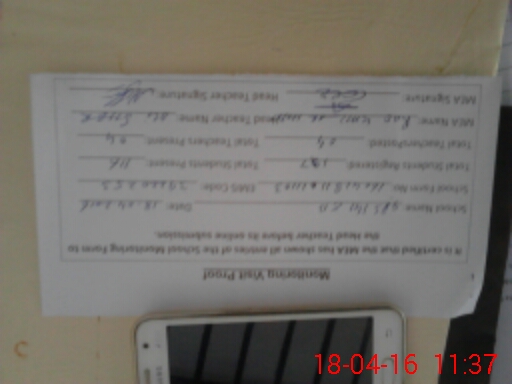 | Monitoring Date: 18-04-2016 | Start Time: 18-04-2016 11:01 AM | End Time: 18-04-2016 11:37 AM | Name of MEA: Kh**** Ha**** (R**** | |