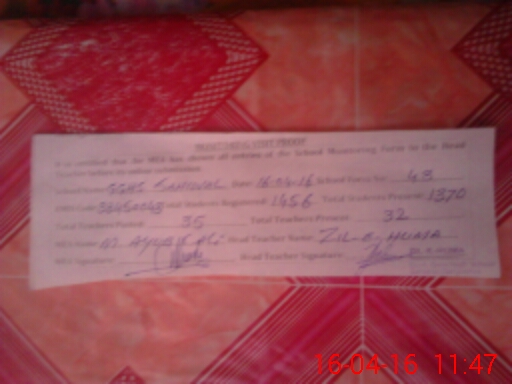 | Attendance Register | Head Teacher | MEA with School | Visit Proof |