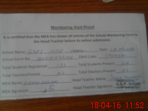 | Certified that this School was Inspected by the Undersigned MEA/DMO Today and the Information Stated Above is as Per Record. | |||||