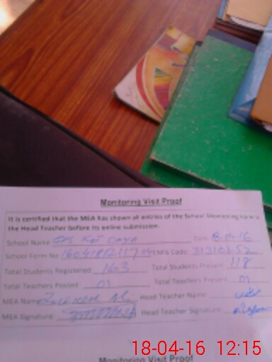 | EMIS Code: 31310252 | Name of School: GPS KOT DAYA | |||