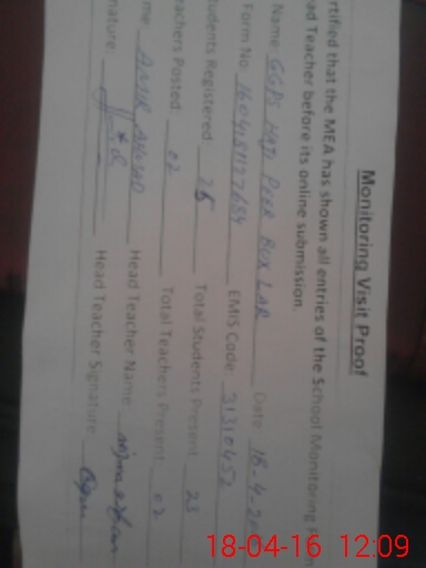| EMIS Code: 31310452 | Name of School: GGPS HAJI PEER BUKHSH | |||
