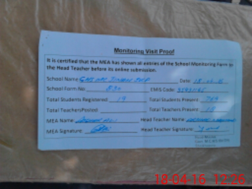 | Attendance Register | Head Teacher | MEA with School | Visit Proof |