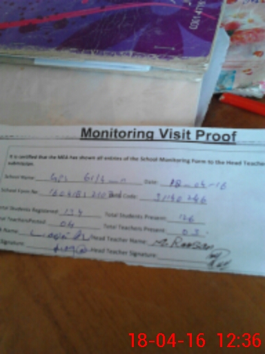 | Attendance Register | Head Teacher | MEA with School | Visit Proof |