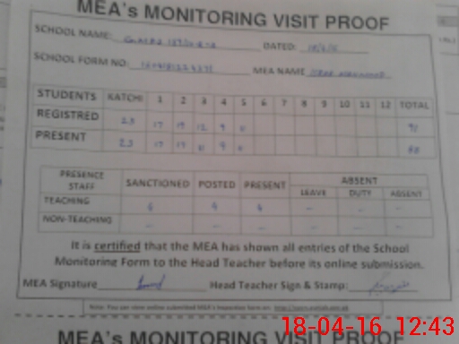 | Certified that this School was Inspected by the Undersigned MEA/DMO Today and the Information Stated Above is as Per Record. | |||||