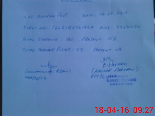 | Name: MU**** RU**** Designation: (School Headmaster's/Headmistress's) SSE Phone/Cell Number: 03**** |