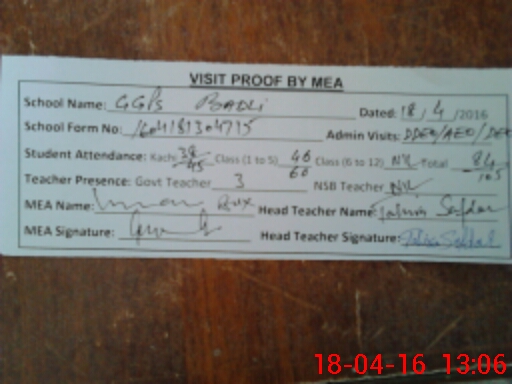 | Attendance Register | Head Teacher | MEA with School | Visit Proof |