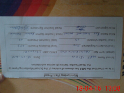 | Attendance Register | Head Teacher | MEA with School | Visit Proof |