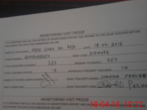 | EMIS Code: 31310034 | Name of School: GGHS CHAK NO. 45/P | |||