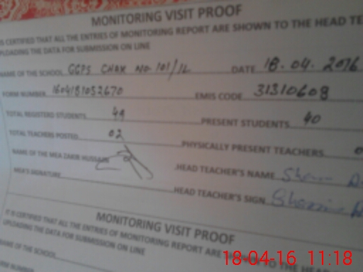 | EMIS Code: 31310608 | Name of School: GGPS CHAK NO 101/1-L | |||