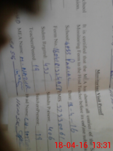 | Attendance Register | Head Teacher | MEA with School | Visit Proof |