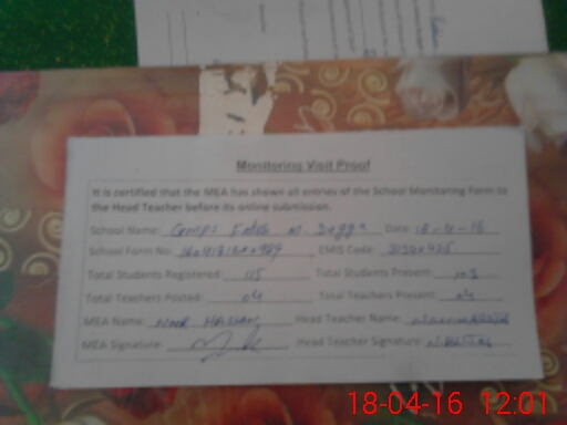 | Certified that this School was Inspected by the Undersigned MEA/DMO Today and the Information Stated Above is as Per Record. | |||||