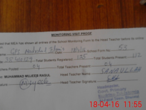 | EMIS Code: 38410129 | Name of School: GPS MADRISA TUL ISLAMIA AL-FAZAL TOWN BHALWAL | |||