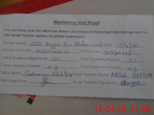 | EMIS Code: 31330178 | Name of School: GPS DAGGA DUR MUHAMMAD | |||