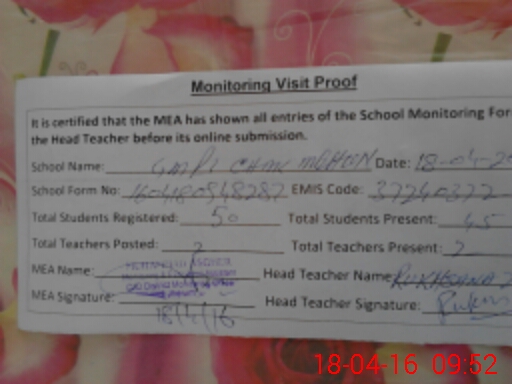 | EMIS Code: 37240372 | Name of School: GMPS CHAK MEHUN | |||