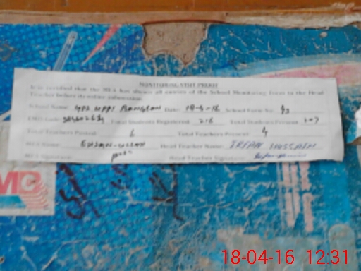 | Attendance Register | Head Teacher | MEA with School | Visit Proof |