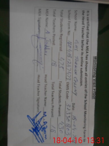 | Certified that this School was Inspected by the Undersigned MEA/DMO Today and the Information Stated Above is as Per Record. | |||||