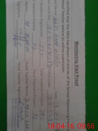 | Attendance Register | Head Teacher | MEA with School | Visit Proof |