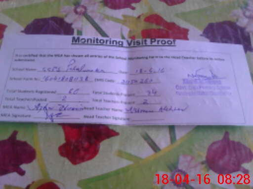 | Attendance Register | Head Teacher | MEA with School | Visit Proof |