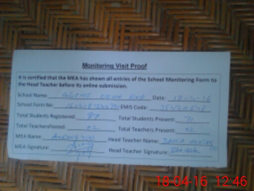 | Certified that this School was Inspected by the Undersigned MEA/DMO Today and the Information Stated Above is as Per Record. | |||||