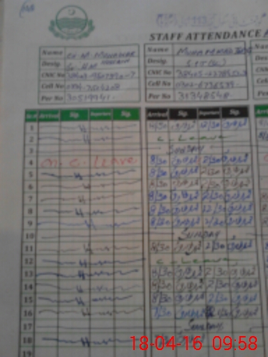 | CNIC | Full Name | Designation | R/C | Absence During Last Calender Month |