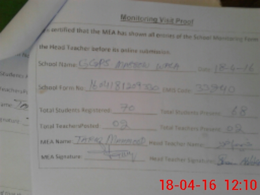 | Certified that this School was Inspected by the Undersigned MEA/DMO Today and the Information Stated Above is as Per Record. | |||||