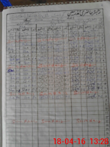 | CNIC | Full Name | Designation | R/C | Absence During Last Calender Month |