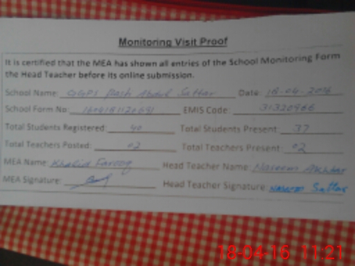 | EMIS Code: 31320966 | Name of School: GGPS BASTI ABDUL SATTAR (PSSP) | |||