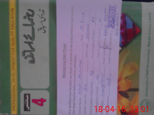 | Remarks (Use Separate Page if Required): H teacher was absent pls correct name of razia nawaz in stead of razia bano pst | |||||