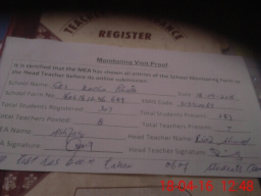 | Attendance Register | Head Teacher | MEA with School | Visit Proof |