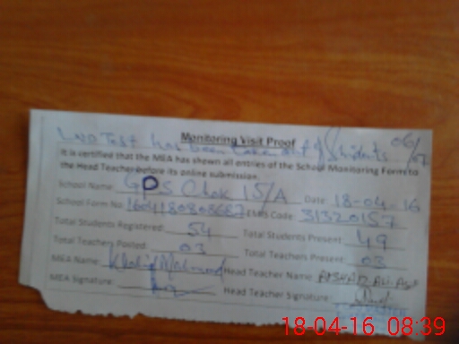 | EMIS Code: 31320157 | Name of School: GPS CHAK 15/A | |||