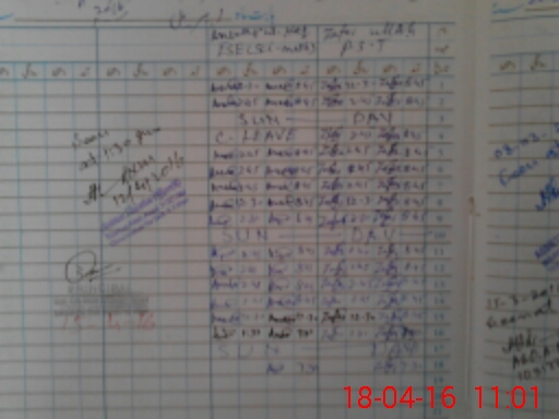 | Monitoring Date: 18-04-2016 | Start Time: 18-04-2016 11:00 AM | End Time: 18-04-2016 11:17 AM | Name of MEA: Mu**** As**** KP**** | |