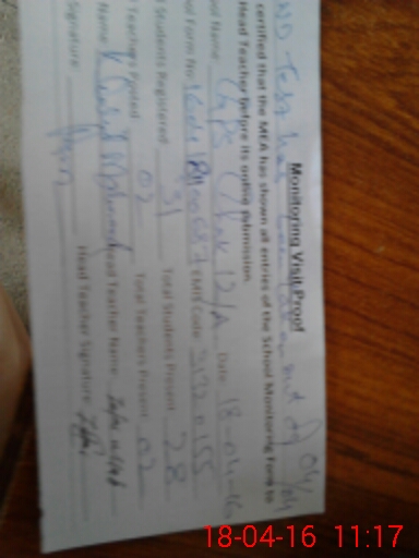 | Name: MU**** IR**** Designation: (School Headmaster's/Headmistress's) PST Phone/Cell Number: 03**** |