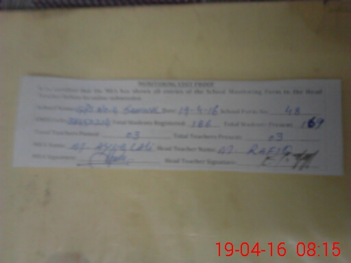 | Attendance Register | Head Teacher | MEA with School | Visit Proof |