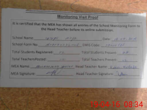 | Certified that this School was Inspected by the Undersigned MEA/DMO Today and the Information Stated Above is as Per Record. | |||||