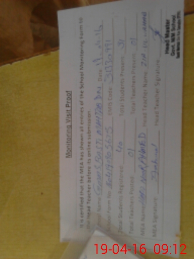 | Attendance Register | Head Teacher | MEA with School | Visit Proof |